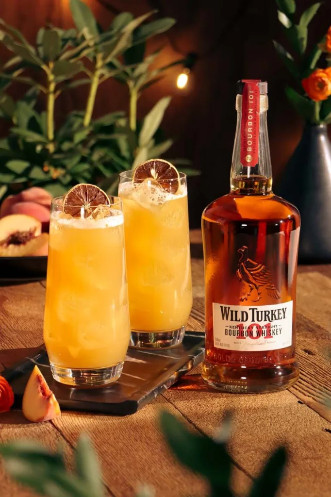 Embrace Southern charm with a Kentucky Peach Sweet Tea. This delightful cocktail combines bourbon, peach schnapps, iced tea, and a squeeze of lemon. The sweet tea and peach flavors blend beautifully with the smooth bourbon, creating a refreshing and slightly boozy twist on a classic summer beverage. Garnish with a peach slice and a mint sprig.Read the full recipe